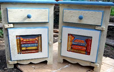 | relooking meuble:relooking chevet ancien décor champetre | relooking meuble:relookingtable de nuit, decor fruits des bois