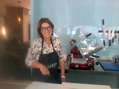 boutique italienne ouverte a ales au mois de Juillet, mobilier réalisé en bois de palettes, et réalisés sur mesure | peinture spéciale commerce alimentaire, maison crées poar bastide creations, finition vernis a l orange |
