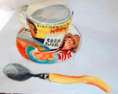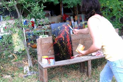 ateleir artiste, Prémice de l'oeuvre, 1er jour, toile de 60X80xm | Comme pour l'apprentissage de la menuiserie, apprentissage et travail en pratique sur la toile | L'oeuvre au final, une semaine de travail intense |
