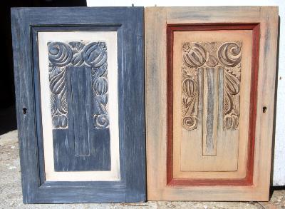 meuble années 30, peinture farine | stages création entreprise: L apprentissage des techniques sur des portes et tiroirs: | l idée du nuancier client revisité sur des portes de cuisines ici, porte cérusée et patinée avec notre recette |