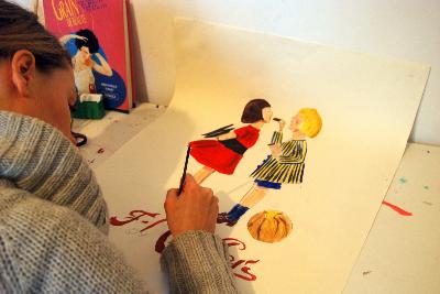 atelier trompe l'oeil, aprés fabrication de la toile sur chassis