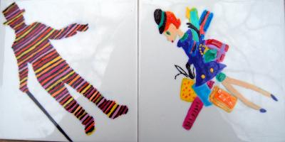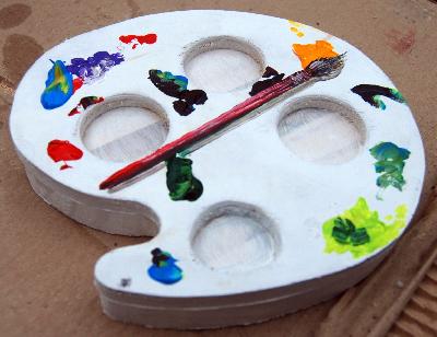 Les oeuvres de Gwen:peinture sur porcelaine | Créativité:palette trompe l'oeil en bois, décor trompe l'oeil,porte bougies | L'étagère"décalée", et autonomie de l'éléctro portatif pour Gwen |
