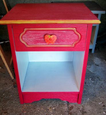 Formation peinture sur bois | Préparation de stock pour ouverture de boutique.. | Petit chevet relooké,céruse blanche, décor fraises |