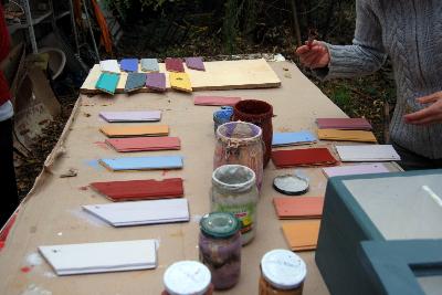 formation restauration bois et céruses | stages de farication des peintures , cires, vernis (farine, colle de peau, caseine, oxyde..) | atelier chimie, lazures bieres, colle de peau,élaboration du nuancier |