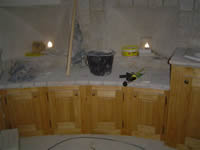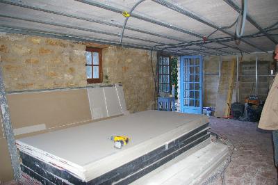 création d'un appartement , montage de cloisons, isolation | | Au fond, création d un espace cuisine, délimité par un comptoir crée su_r mesure |