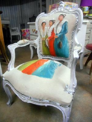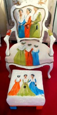 | fauteuil louis 15, décoration originale a la main, theme, Arlésiennes peint a la main dans l atelier | création sur commande d 'un fauteuil louis 15, restauré, décor arlesiennes peint a la main 595 € |