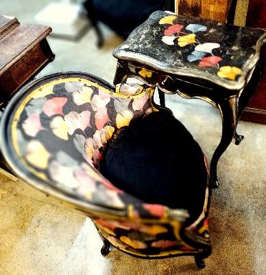papillons peint a la main | fauteuil de style baroque | méridienne louis philippe ancienne, restaurée,garnissage guindage, tapisserie traditionelle 895€ |