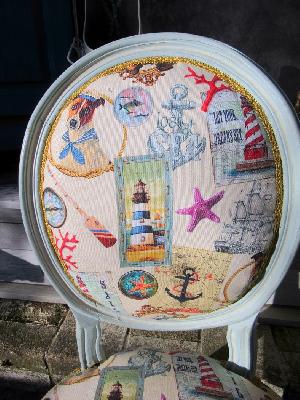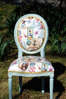 jolie rénovation tapisserie pour cette chaise médaillon la Tamarissiere"