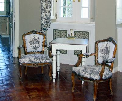 fauteuil baroque,décor coquelicots | contraste des styles, fauteuils ancien et tissus contemporain | canapé de style louis 15 restauré, toile de jouy |