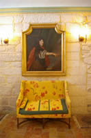 Ici, le décor des tentures donne le ton aux décors des menuiseries | pouf | Petit canapé de style, |