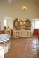 Une salle de bain a l'incroyable charme, conféré en partie parles boiseries anciennes restaurées |