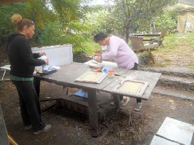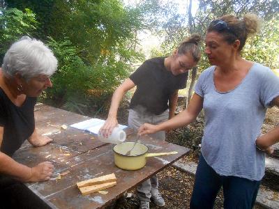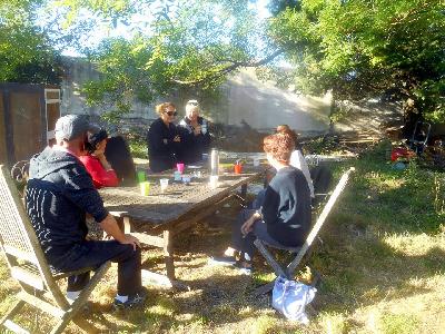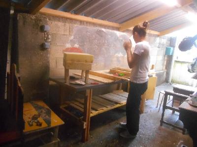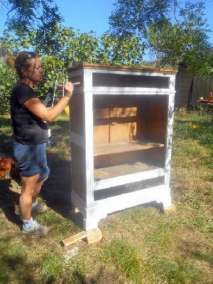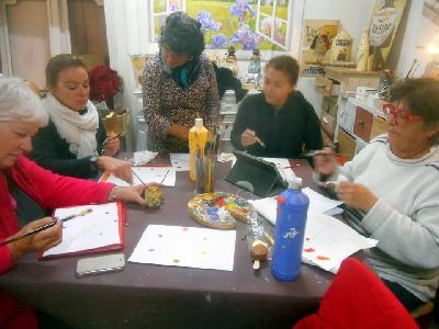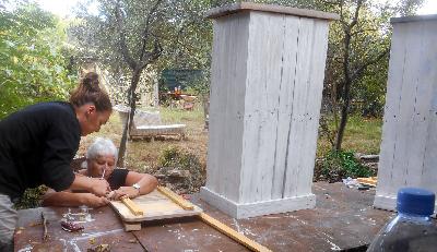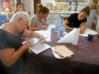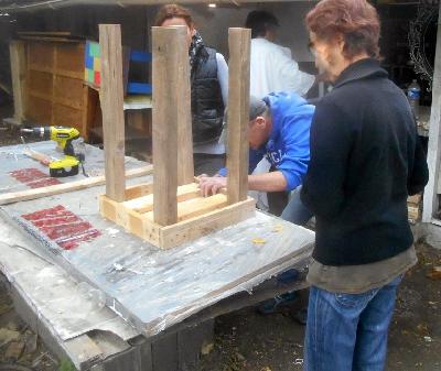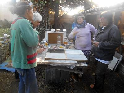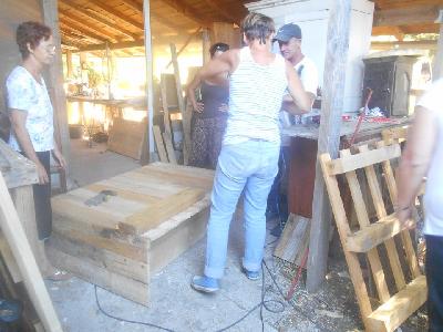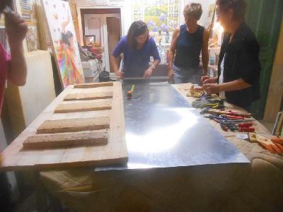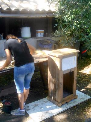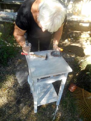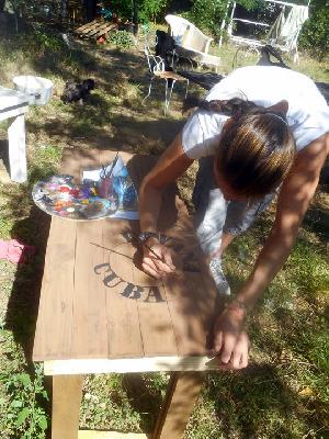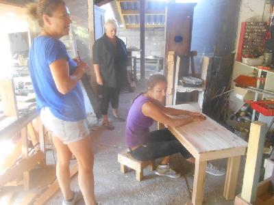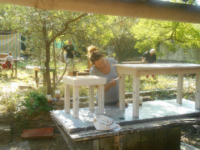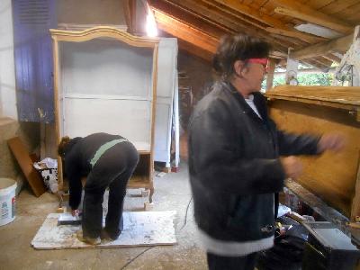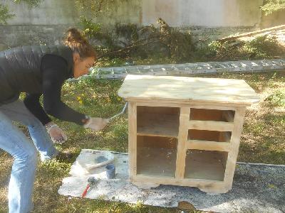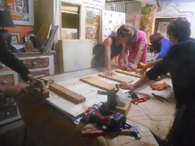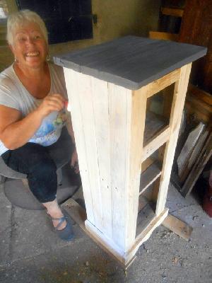 échange entre les stagiaires, : table en bois de palette de royan | f ormations relooking meubles et upcycling : relooking d'une bibliotheque chevet relooké, peinture a l huile maison | initiation aux achats en salle des ventes |