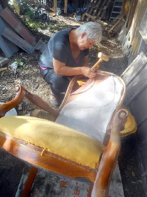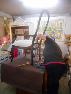 stages et formations tapisserie, recouvrement d'un voltaire | atelier restauration armoires | atelier restauration mobilier |