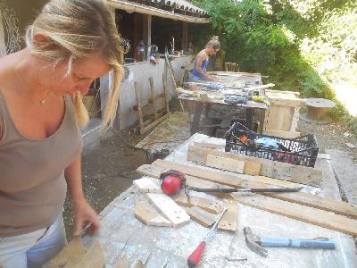 | | la rentrée: lundi 05 septembre pour une nouvelle année créative et prolifique! | | | JUILLET 2016 | | dernière session année 2016 rendez vous en Septembre pour de nouvelles formations création d'entreprise éco recyclage artisanal | Merci a tous nos futurs artisans,cession 2016, pour leur créativité et leur pugnacité!! | stages tout public: reprise des ateliers en Septembre programme en cours | | | | prépaartion d'un ilot central pour boutique en bois recycles | aménagement boutique de fleurs,pour Nath, création de ses modules de présentations : finition au vinaigre | table de salon de Cecile, peinture farine | | | | formation eco recyclage personnalisées et adaptées aux projets professionnels | Journées découvertes tout public, atelier menuiserie palettes | apprentissage en atelier | .JPG) | | | Nath, en formation amménagement d'esopaces et boutiquer de fleurs: création de son mobilier et développement de son activité | test final : vérification des acquis et de la productivité sur mobilier , peinture et produits maison | création de supports de boutique en bois de palette, ilot central | %20[HDTV%20(720)].JPG) | | | stages création de mobilier pour boutique, en bois recyclés | notre fleuriste, Nath, prochaine reprise d entreprise: la bulle verte | création d'une console présentoir en palettes | | | ].JPG) | préparation du bois, console palettes | stages customisation d un chevet zingage | formation éco recyclage de mobilier,peinture au vianigre et zingage | ].JPG) | ].JPG) | ].JPG) | relooking d une salle a manger | fabrication de portes en bois de palette | atelier création d'objets en bois de palette, cadres..;étageres, | | | | .JPG) | .JPG) | .JPG) | atelier pouf palettes, matériaux de recupération pour cecile de limoges | la créativité, association d'une piece ancienne avec palettes | constitution du stock de base pour Flo, et étiude des marges | %20[HDTV%20(720)].JPG) | ].JPG) | ].JPG) | manipulation de la ponceuse lime, un outil pôlyvalent | Préparation des bois , manipulation de la scie radiale | poncage et préparation de portes de placard | .JPG) | .JPG) | .JPG) | petit cours d'électricité, montage d une douille et systeme d éclairage de base | valeur ajoutée a nos formations, la polyvalence essentielle dans notre métier | et cela fonctionne! | ].JPG) | ].JPG) | ].JPG) | l atelier trés prisé: l atelier chimie,fabrication de produits de décoration | fabrication d un vernis, gomme de dammar,