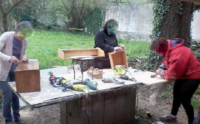 essence d'écorce d'oranges | notre assistante nordiste, vérification des acquis | .JPG) | .JPG) | | jolie customisation d'un chevet zingué pour Flo, a retrouver dans sa future boutique atelier de Gravelines | cours de peinture et rappel des bases: le cercle chromatique | menuiserie palette: création d'un tabouret | | | | | | | customisation d un chevet, peinture farine , oxyde, zingage étude de rentabilité | de belles rencontres entre futurs artisans de régions différentes, dans un prohet commun | atelier thérapeuthique en partenariat avec l hopital d ales: une belle aventure humaine: emmenagement d un espace en bois de palettes.. a suivre | .JPG) | .jpg) | | peinture farine de la table réalisée en bois de palettes | préparation du bois pour finition cérusée sur mesrisier relooking salle a manger | le laboratoire: tests des peintures et coloris | .JPG) | | | cours improvisé de peinture sur porcelaine | initiation a la manipulation de la scie a chantourner, un outil a manier avec prudence | initiation a l'utilisation de la perceuse a colonne | .JPG) | .JPG) | | opération délicate, zingage d'un petit meuble | l'atelier modelage: fabrication de boutons de portes en porcelaine froide | atelier chimie avec la préparation de la traditionelle peinture de base, la peinture farine | .JPG) | | | prépartion objets divers en ois recyclés | atelier initiation electro portatif menuiserie palettes, création d'un canapé | jardinière en bois de palettes | .jpg) | | | création de toilettes chimiques en bois de palettes: royal! | initiation au sanglage d une chaise pour customisation | peinture de toilette seche, une inovation dans nos ateliers palettes, de Cecile | .JPG) | | | atelier peinture naturelle pour le banc d 'exterirur de notre groupe du jeudi: banc réalisé en commun | prépartion d'un cimptoir zingué en palettes, pour R | le tabouret palettes, décor cupo cakes | .JPG) | | | préparation du décor du canapé | canapé enfants en bois recyclé | détail motif et peinture argile rose | | JUIN 2016 | | %20[HDTV%20(720)].JPG) | %20[HDTV%20(720)].JPG) | %20[HDTV%20(720)].JPG) | création et design en bois de recupération | recyclage arytisanal | inovation pour cecile,toilette seche en palette, royales ! | %20[HDTV%20(720)].JPG) | %20[HDTV%20(720)].JPG) | %20[HDTV%20(720)].JPG) | finition de la table de salon zn palette | une création en commun de l 'atelier thérapeuthique, en bois de palette, le banc | trés joli résultat pour le groupe | %20[HDTV%20(720)].JPG) | %20[HDTV%20(720)].JPG) | %20[HDTV%20(720)].JPG) | création de chaises d'exterieur en palette | préparation de jardinières en palette, atelier menuiserie | reflexion , réalisation en commun | | | | %20[HDTV%20(720)].JPG) | %20[HDTV%20(720)].JPG) | %20[HDTV%20(720)].JPG) | le nord aide le centre, c'est cela aussi nos ateliers, nos formations, des échanges entre futur créateurs d'entreprise | atelier aménagement d'espaces en bois de palettes | stages tapisserie d ameublement | %20[HDTV%20(720)].JPG) | %20[HDTV%20(720)].JPG) | %20[HDTV%20(720)].JPG) | atelier tapisserie refection de fauteuils | étude du projet et definition des objectifs en commun | création d'une table en bois de palettes | %20[HDTV%20(720)].JPG) | %20[HDTV%20(720)].JPG) | %20[HDTV%20(720)].JPG) | préparation d'un banc en palettes | atelier recuvrement avec l intruse de l atelier | formations tapisserie | .jpg) | .jpg) | .jpg) | canapé en fats en bois de palettes | customisation d'une huche a pain en petit confiturier | nuancier sur poste pour expo, finicition