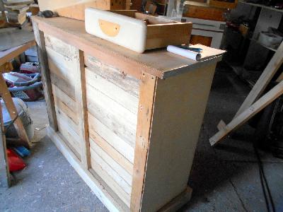 | l histoire d un mado récupéré dans une cave, fond completement pourri | élimination des parties abimés et restauration avec du bois de palettes(toujours dans notre éthique du bois recyclé)