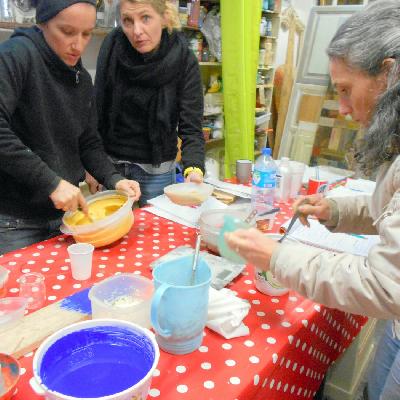 fabrication d'une peinture a l 'argile | atelier initiation tapisserie