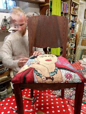 | tapisserie initiation pour Pierre, chaise Frda Khalo