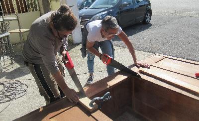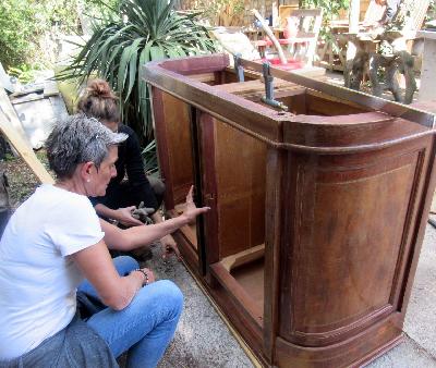 transformation d un haut de buffet destiné a la destrcutction, en comptoir: étude des couts logistiques | récupération d'une bonnetière
