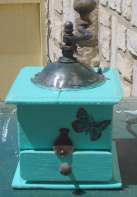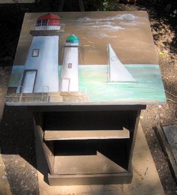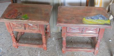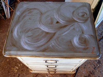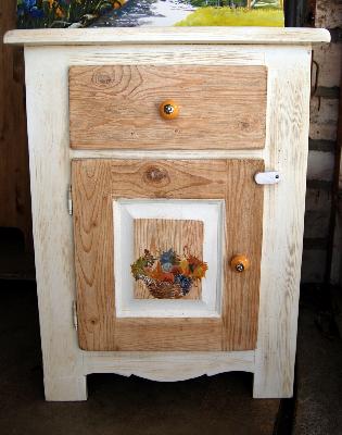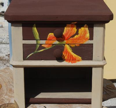 |  | | | petit chevet relooké peinture farine, décor iri
