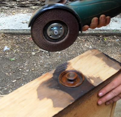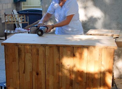 | Atelier relooking cuisines, décapage, préparation des bois | élimination d'un placage trés abimé a la meuleuse