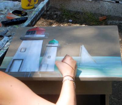 | les 1eres oeuvres de Marielle | Préparation relooking cuisine,démontage des portes, numérotation | | | | aprés quelques cours de peinture, Renée se lance avec succés
