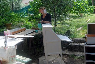 |  | atelier décapage armoire l 15 | 1er coup de pinceau de Marie