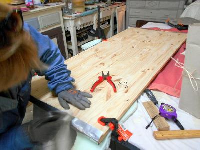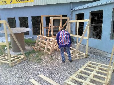 | fabrication d 'un plateau en bois de palettes, pour futur zingage