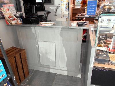 | le plateau a été zingué, comptoir poncé a blanc et peinture a l huile a la lavande